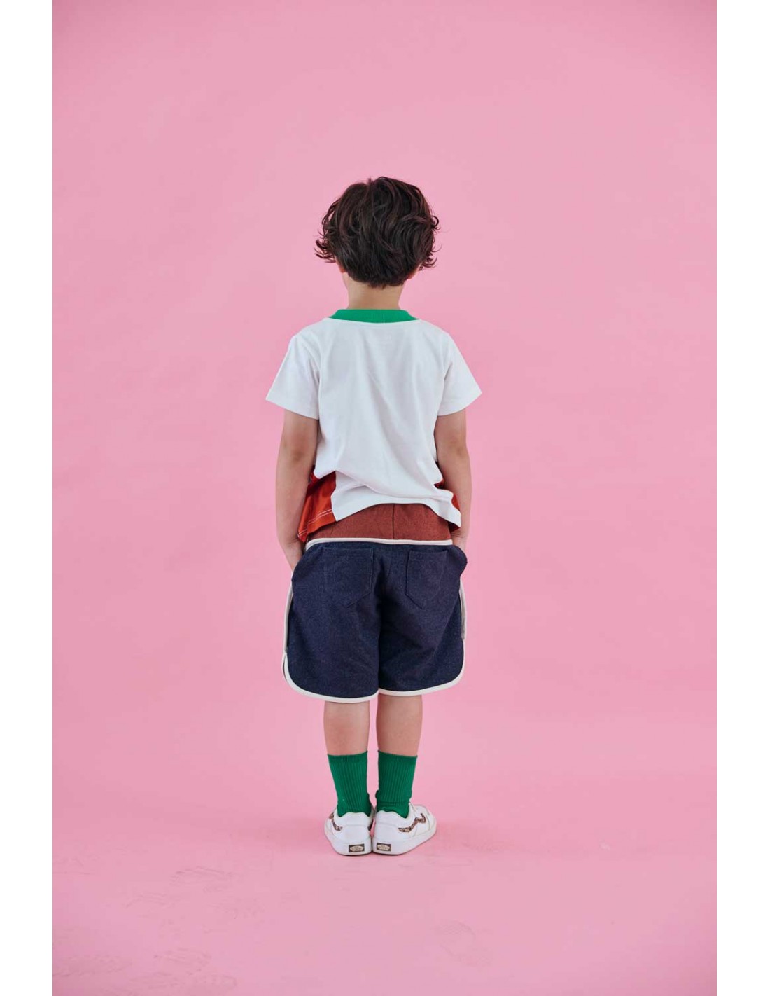 Roberto Baggioの映画からインスピレーションを得たオーバーサイズ気味の男女兼用ハーフパンツ。