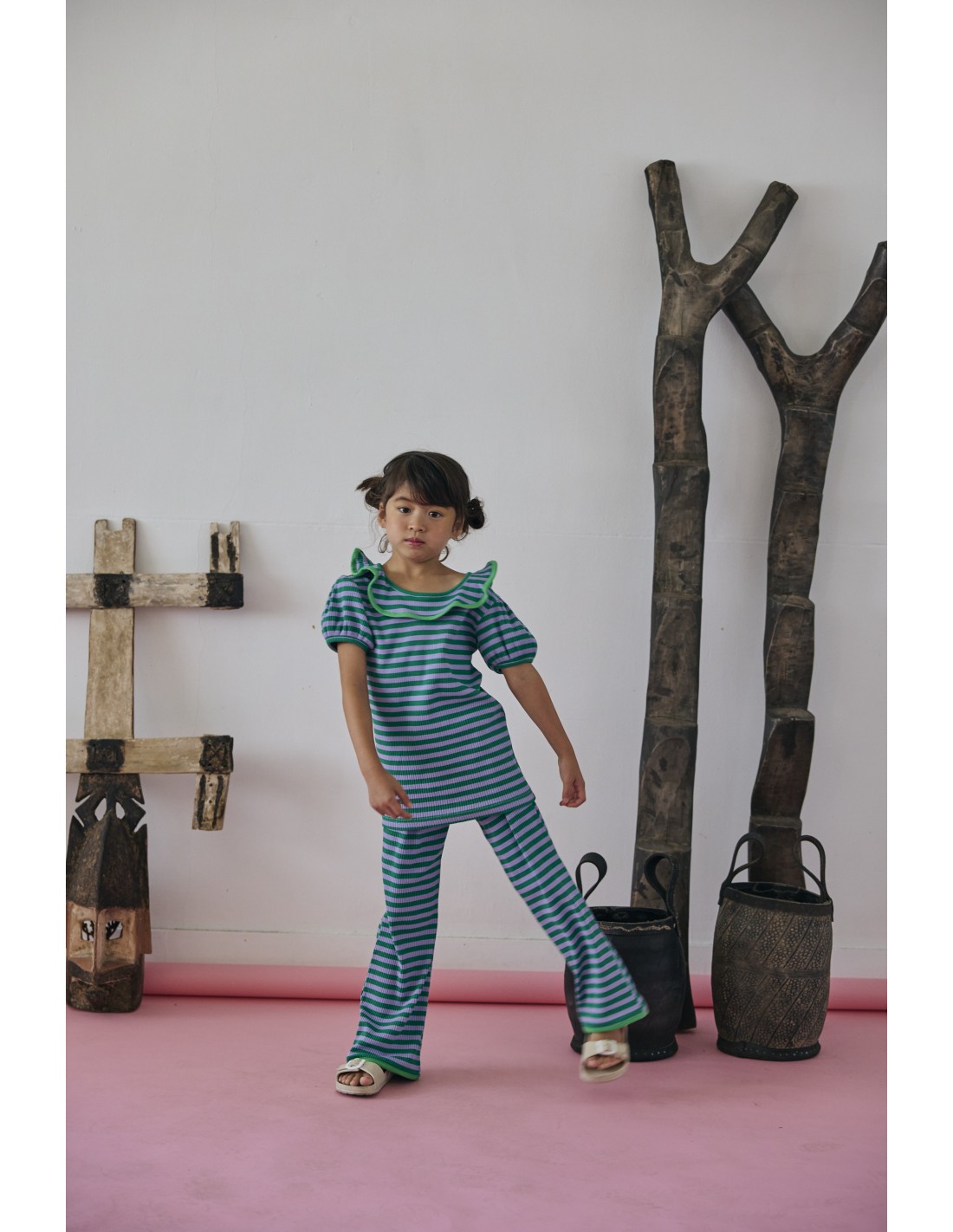 伸縮性の良いリブ素材でできた履き心地抜群の夏用ワイドパンツ