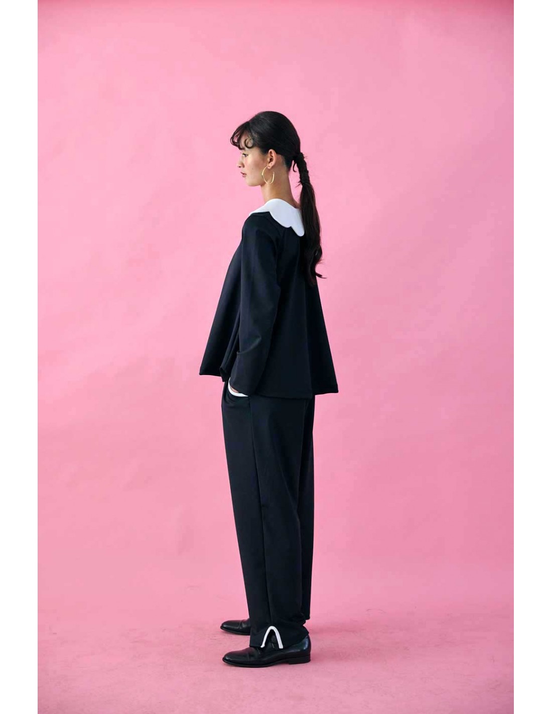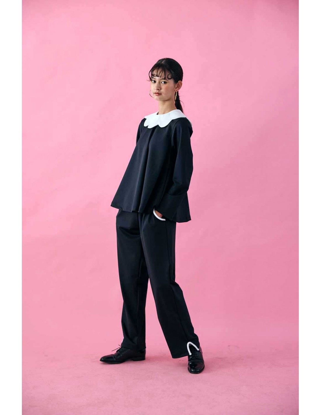 たっぷりフレアが入ったAラインのシルエットに花びらの形をした襟がとってもかわいいです☆
