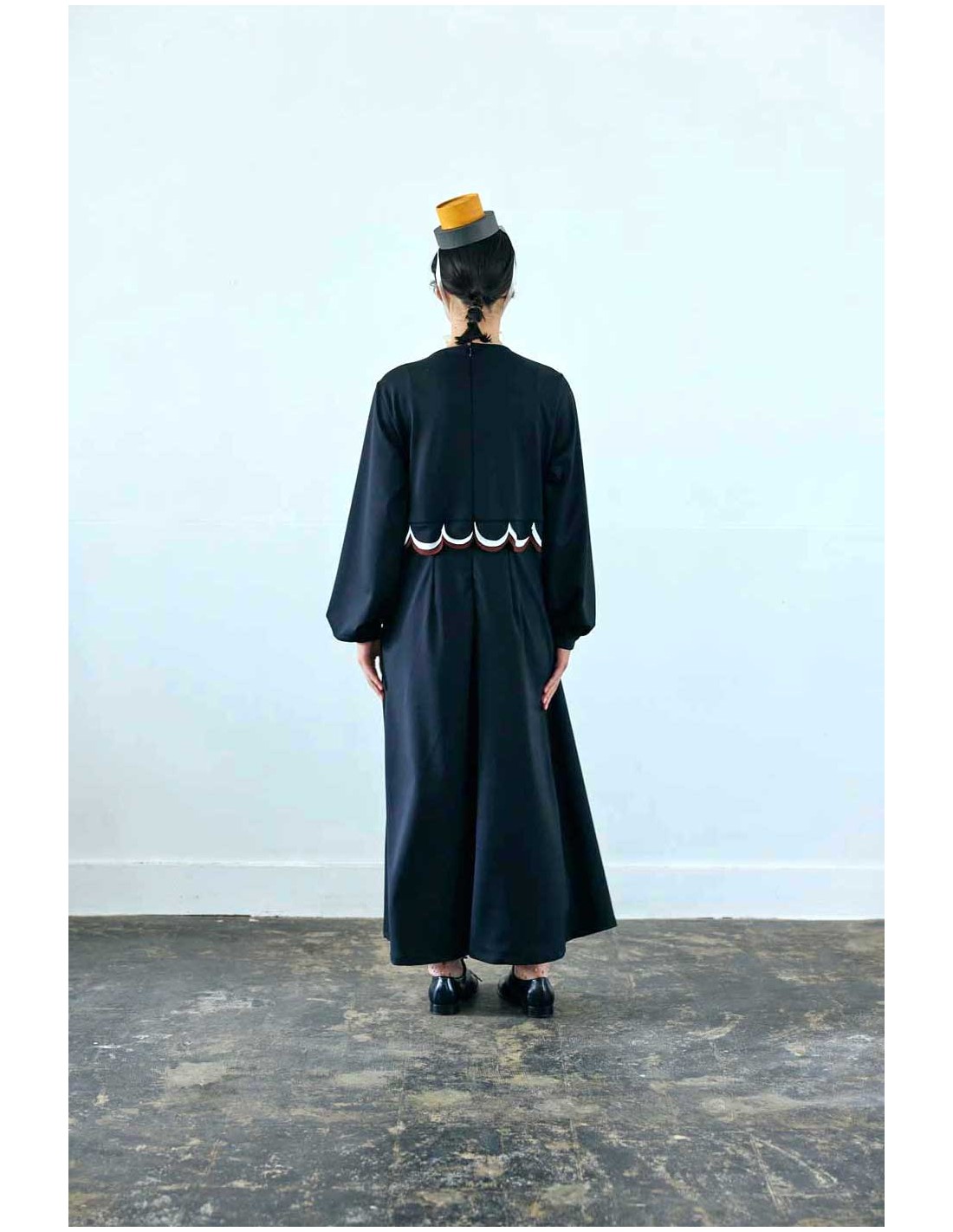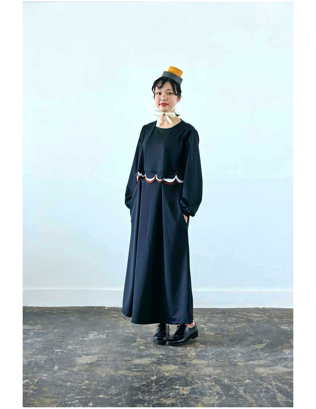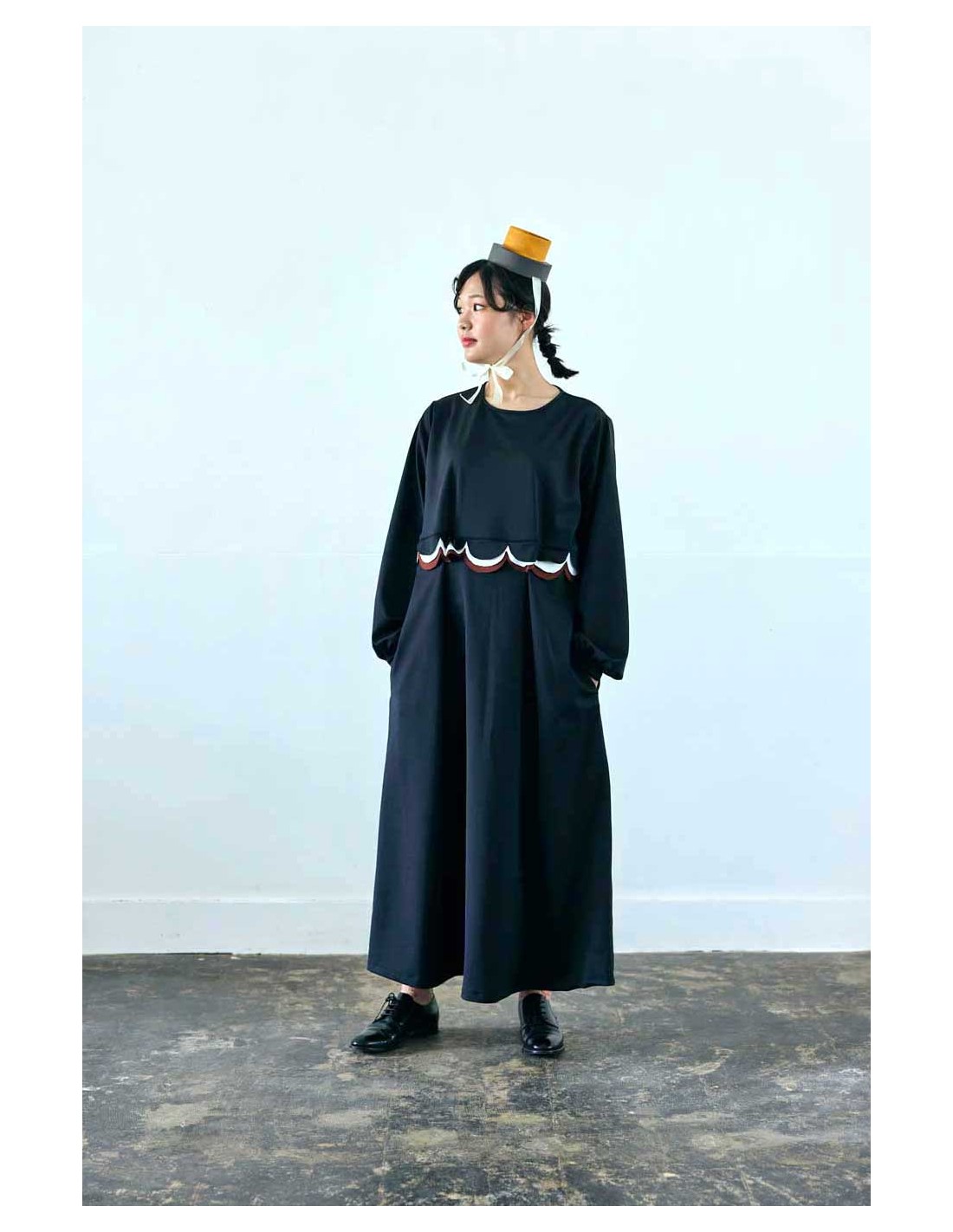 ハイウエスト切り替えにかわいい配色の丸いカットのモチーフがZoZIOらしい大人用ロングワンピース♡