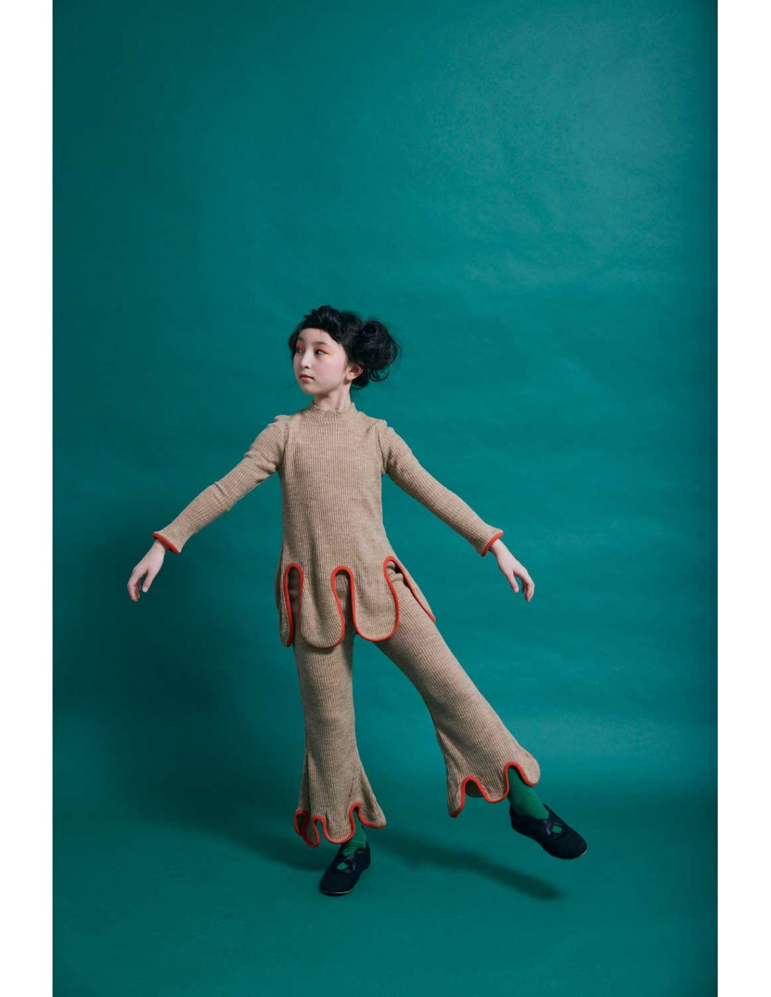 肌触りが良く柔らかいタッチのウール混の生地を使用したAラインシルエットのセミロングトップス。