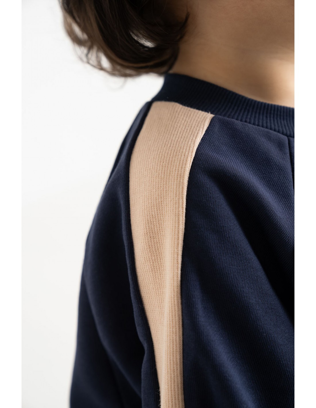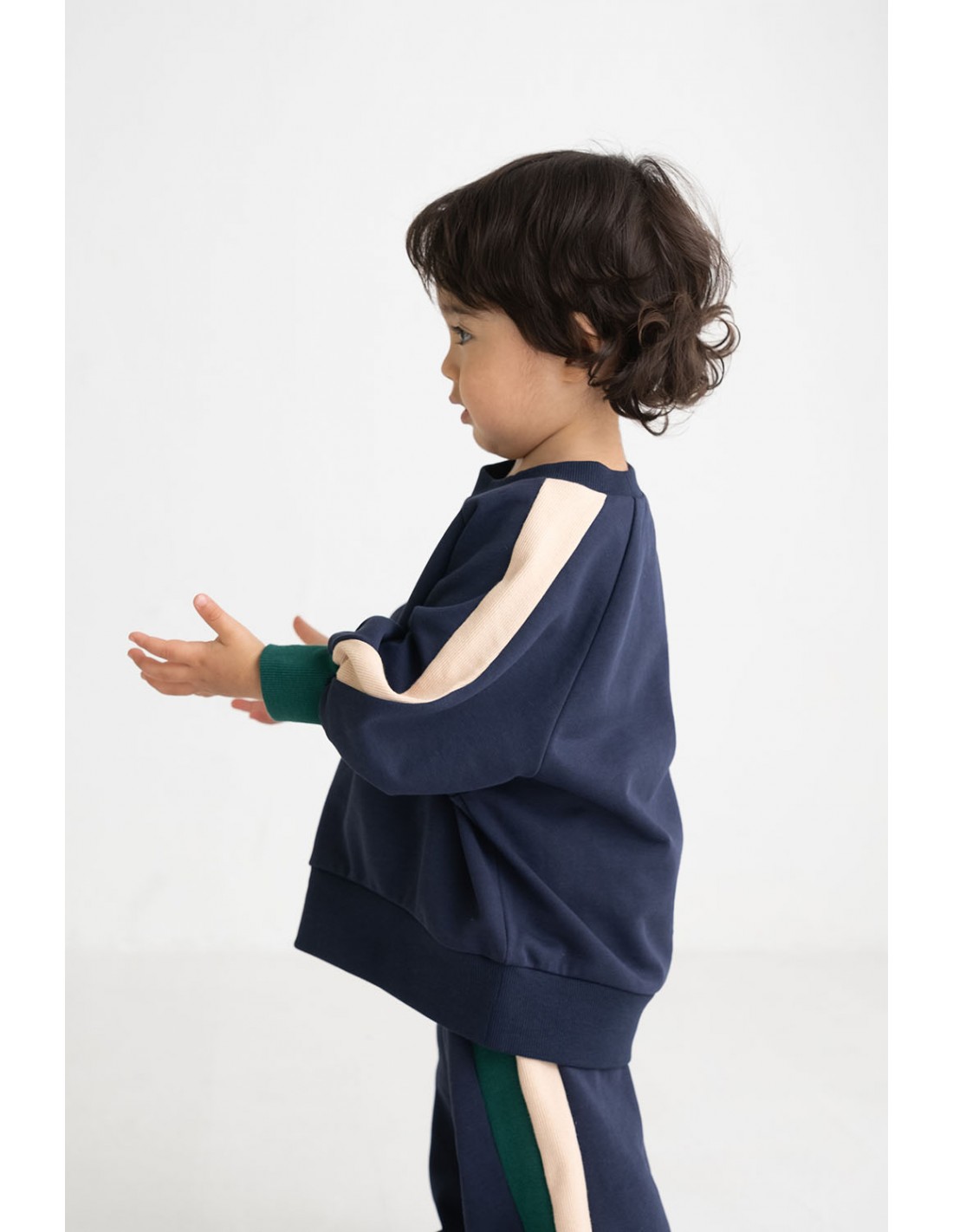 綿95%の肌触りの良いミニ裏毛素材で袖に入った配色のラインがとっても魅力的☆