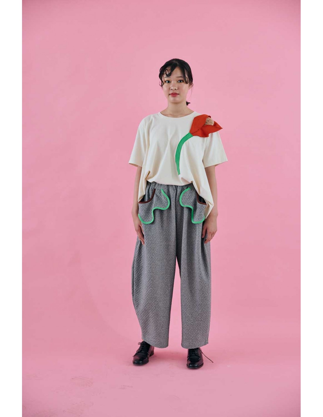 大胆に胸元を飾るアンスリウム花のモチーフ日常を明るくしてくれます☆
